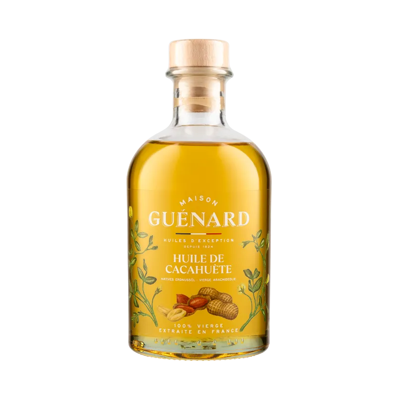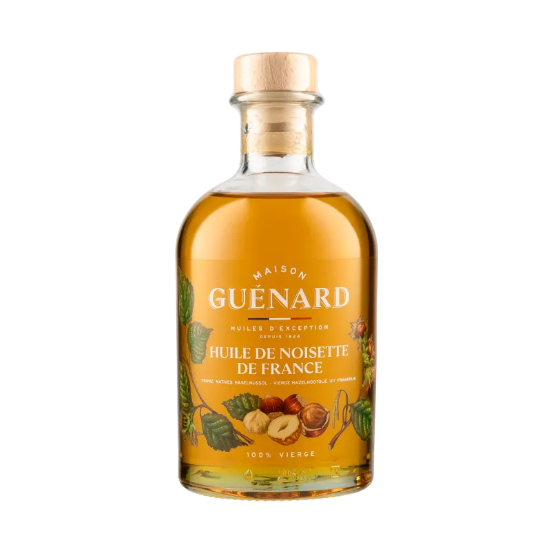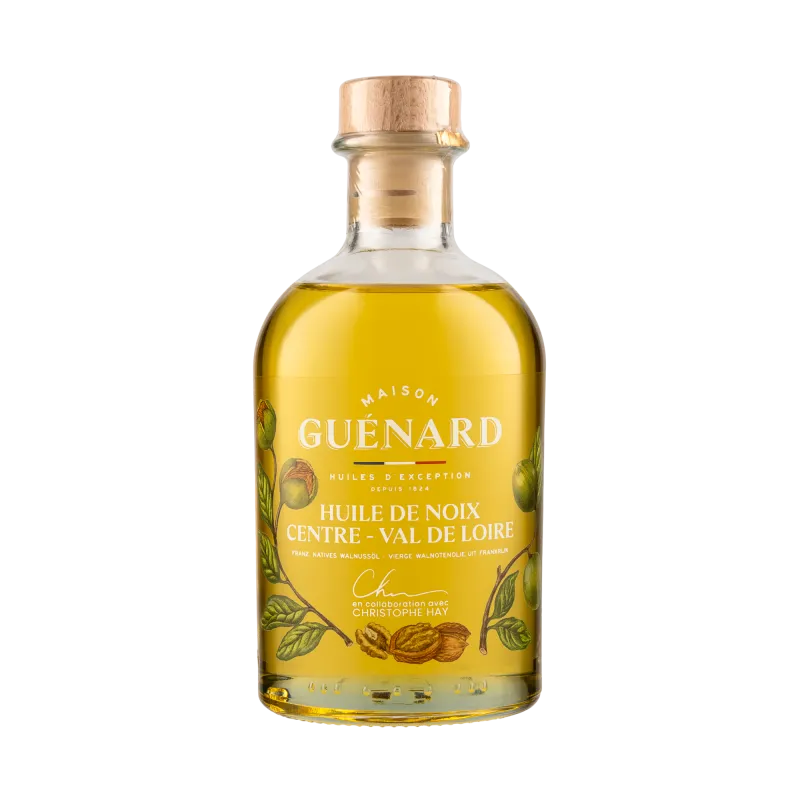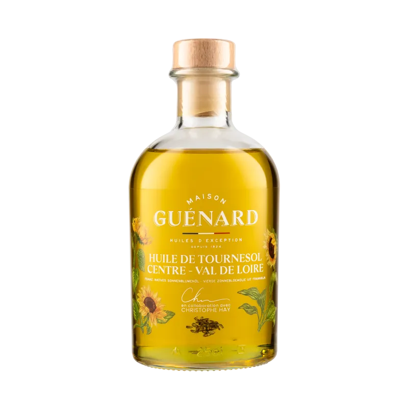 L'huile Guénard est une huile 100% vierge, signifiant qu'elle est extraite de la première pression à froid des graines, préservant ainsi toutes ses qualités gustatives et nutritionnelles. Élaborées par la Maison Guénard, les huiles de Colza, de Noix et de Tournesol sont signées Christophe Hay.