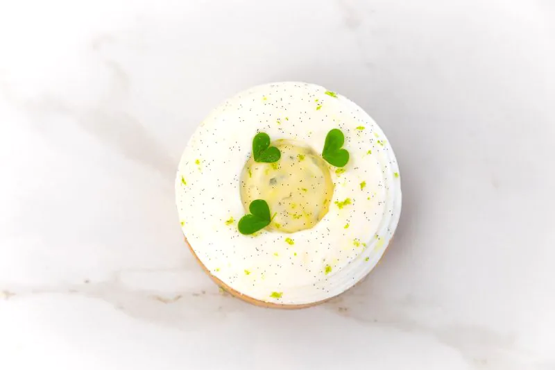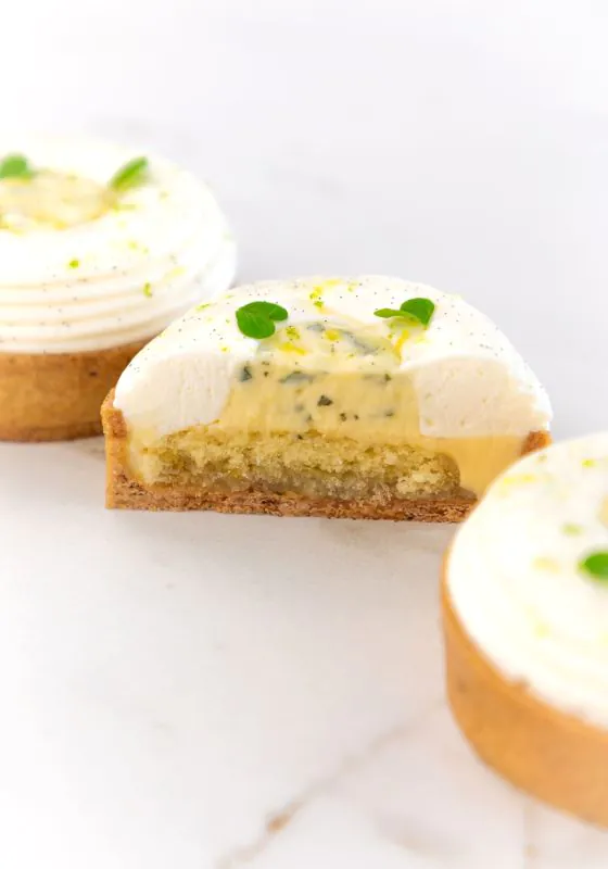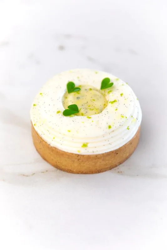 Vanilla shortcrust pastry, lemon and yuzu confit, soft hazelnut biscuit, lemon cream with a hint of mint, light yuzu cream.